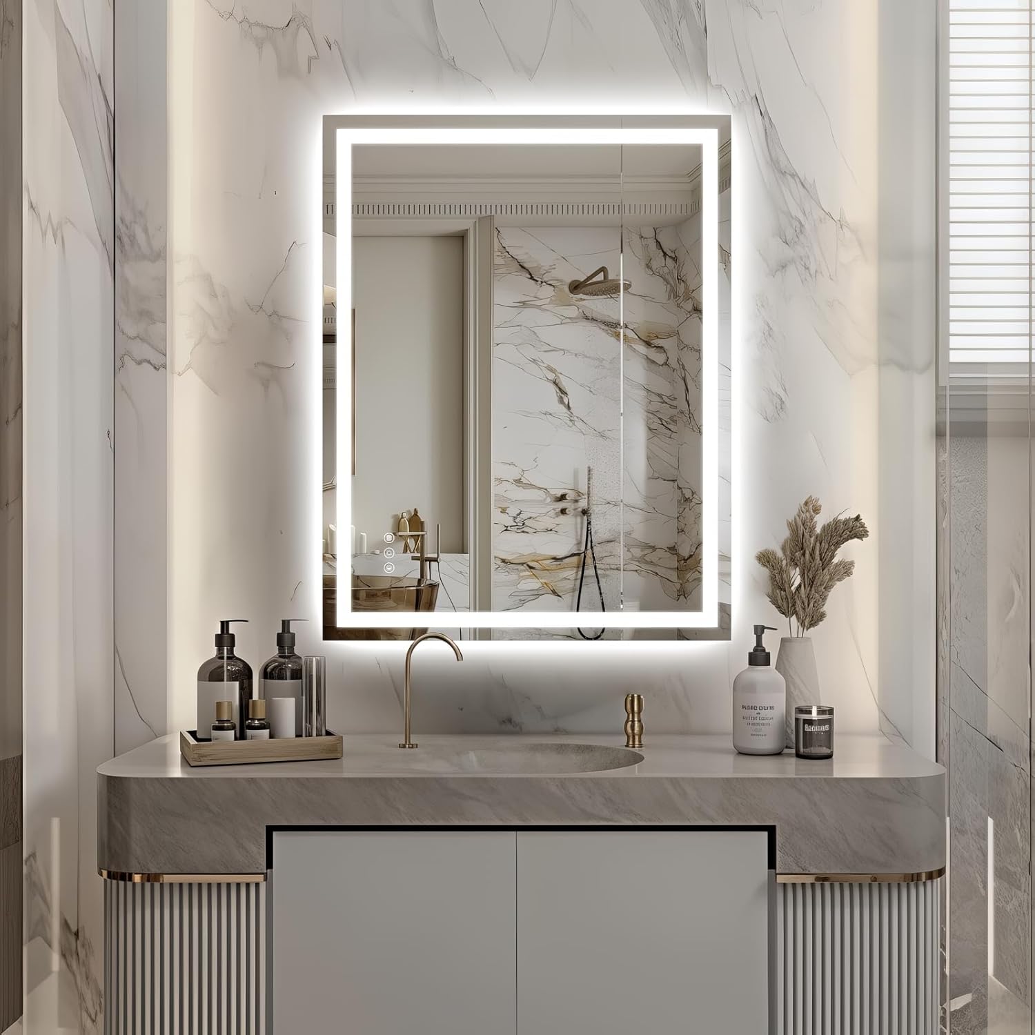 Why TheiaMo? We have professional production team and stable supply chain, focusing on the production of various mirrors, such as floor mirrors, LED mirrors and wall-mounted mirrors etc. We pay attention to details and quality, so that you can buy and use without worries. Features: 1. Super Clear Reflection. 2. 2 BUTTON CONTROL. 3. 3000K to 6000K COLOR TEMPERATURE. 4. FAST ANTI-FOG FUNCTION. 5. Waterproof&Explosion-proof. 6. Exquise frameless design. 7. Warm, natural and white 3 led light colors adjustable. 8. Wall mounted&pluggable. 9. Size: 32"x22", 36"x24", 36"x28", 40"x24", 40"x30", 48"x24", 48"x30". Important Tips 1.Some deviation in size may exist due to manually measured. 2.Due to the different display of computer and mobile phone, there may be some color difference.