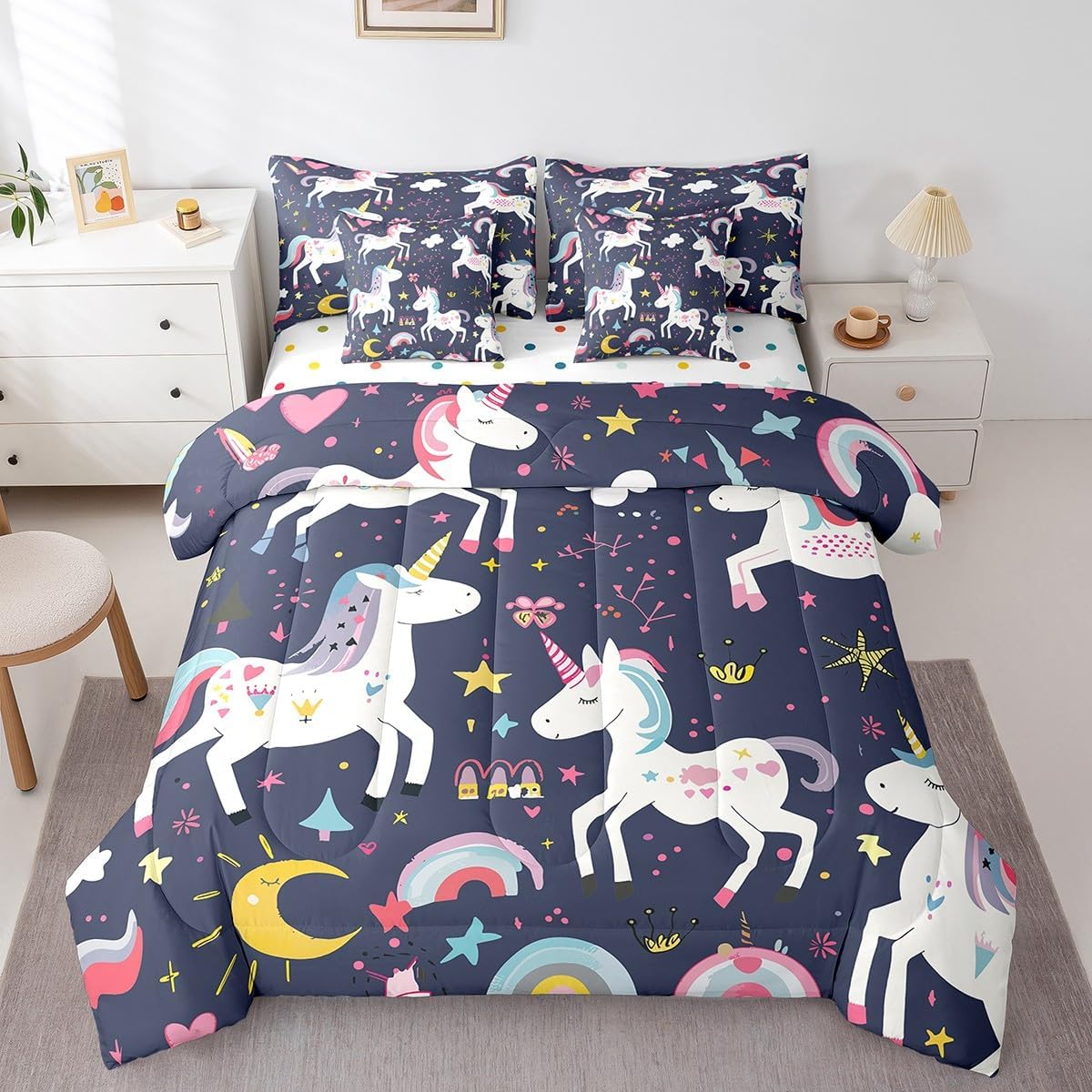This 7 pieces comforter set is a luxurious and complete bedding ensemble designed to enhance your sleep experience and beautify your bedroom. This comprehensive set includes 1 comforter 68"x90",1 fitted sheet 39x75x16",1 flat sheet 96"x67",2 rectangular pillowcases 20"x30",2 square pillow shams 18"x18",providing everything you need for a cozy and stylish bed. Crafted with comfort in mind,this comforter set give a peaceful and restful sleep night after night. The quilt and bedspread are made from premium 90 grams of chemical fiber material that offer exceptional softness and durability. Their lightweight design ensures ultimate comfort without feeling too heavy or restrictive. Whether you prefer a warm and snug atmosphere or a cool and breezy feel,this versatile set caters to your every need. The included bed sheet complements the quilt and bedspread perfectly,ensuring a coordinated look that adds an elegant touch to any bedroom decor. Made from smooth and breathable fabric,it provides a gentle and soothing foundation for a blissful slumber. The four pillowcases,two rectangular and two square,add an additional layer of comfort and style to this set. Pillowcases are often overlooked,but they can make a significant difference in your overall sleep experience. These pillowcases are thoughtfully crafted to accommodate both standard and queen size pillows. With their exquisite design and soft texture,they effortlessly elevate the appearance of your bedding. Upgrade your bedroom decor and embrace a new level of relaxation with the 7 piece comforter set. Its combination of functionality,style,and comfort makes it an ideal choice for anyone seeking a cozy and aesthetically pleasing bedding solution.