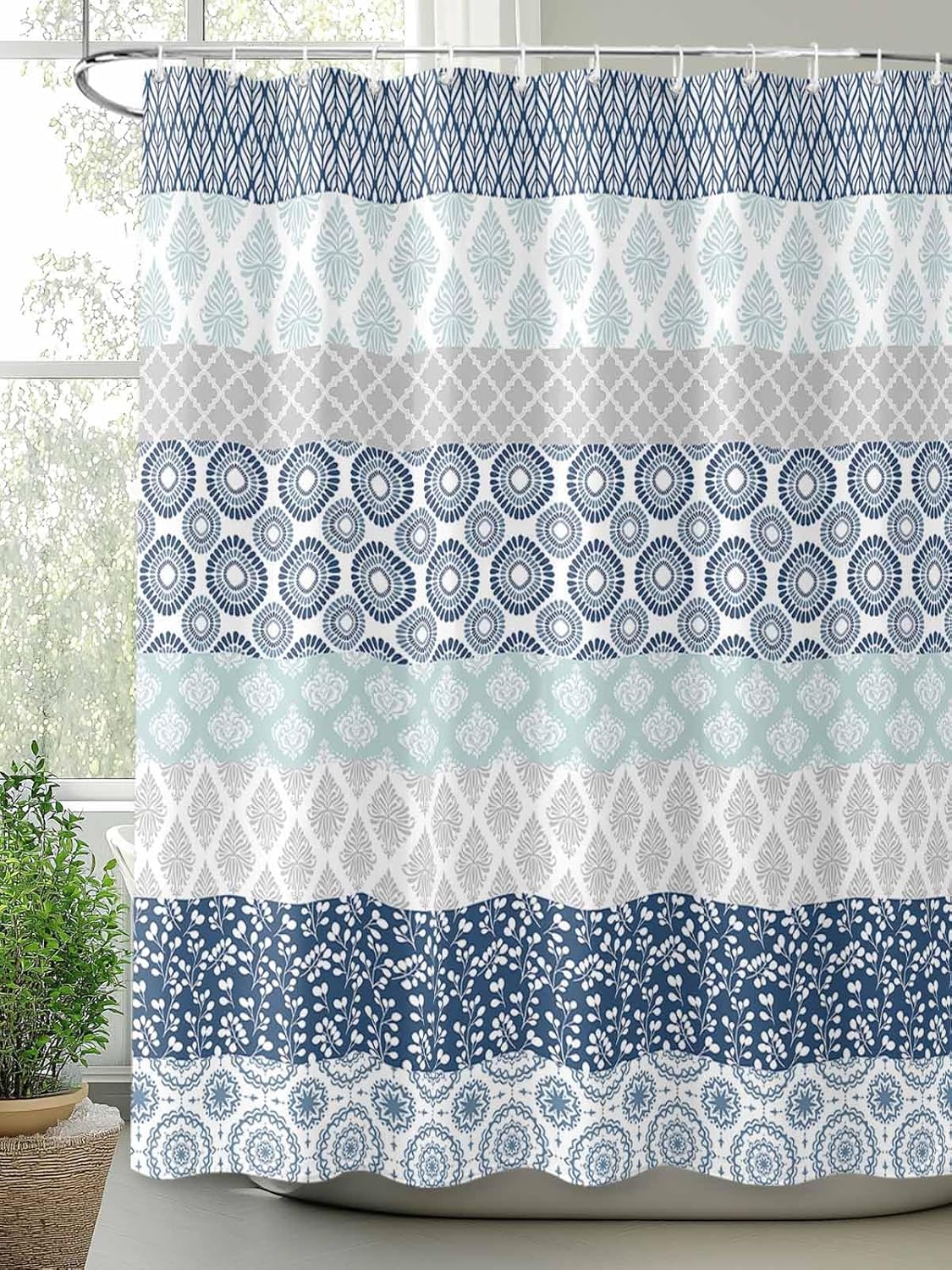 Upgrade your bathroom decor with this beautiful shower curtain We have a professional design team to design various style of pattern for you, exquisite shower curtains can bring excellent decorative effects to your bathroom, perfectly integrated into a variety of home styles -modern, farmhouse, retro, rustic, shabby chic, Northern Europe etc. Bright colors and unique patterns give your bathroom a new look, providing you with the ultimate visual pleasure and a comfortable showering experience. Features WATERPROOF. The smooth surface features raincoat water repellent technology for easy water beading and quick drying. PRIVACY. No liner, the bathroom shower curtain creates a certainly private shower/bath space. GROMMET. The grommets are made of high quality non-rust metal and are strong and durables. The top hole is designed to fit any straight and curved rod, and the diameter of the round grommet is wide enough to fit all types of hooks. HD DIGITAL PRINT. Using state-of-the-art printing technology, vibrant colors and clear images are preserved without fading. MACHINE WASHABLE. Durables bath curtains can be used for multiple washes. Do not bleach. Specifications There are 10 sizes of shower curtains and equipped with 10-12 plastic hooks, you can choose the size that suits you according to the actual measurement. More Application In addition to being used as shower curtain, it can also be used as background cloth, tapestry, partition curtain, etc. A great birthday or party gift for friends or family during Thanksgiving, Christmas, Halloween and New Years