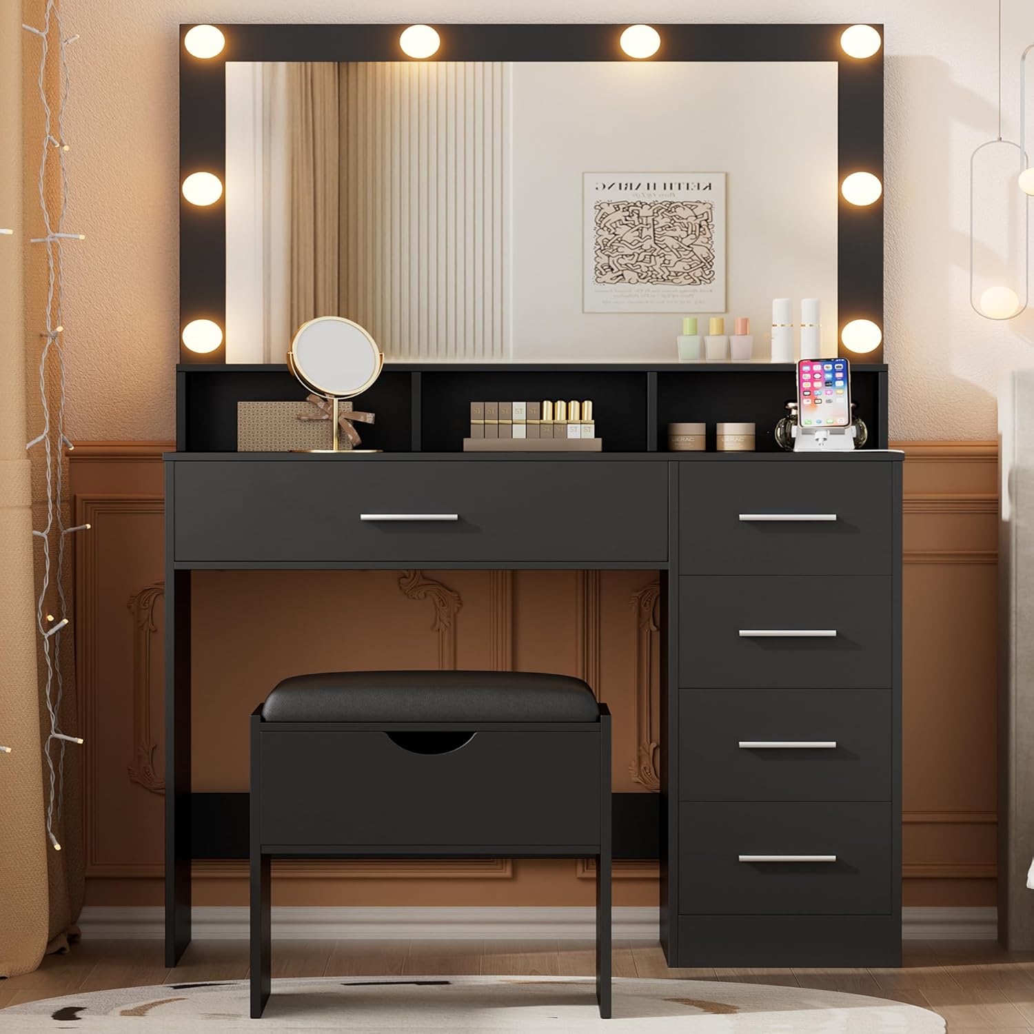 | Included Components | Drawers, LED Lighted Mirror, RGB Light, Stool |